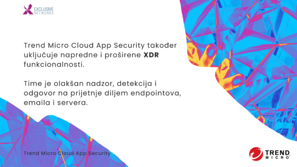 Trend Micro Cloud App Security je SaaS-based platforma koja nadopunjuje built-in funkcionalnosti u email servisima poput Microsoft 365 i Google Workspace. Radi se o sigurnosnom rješenju koje nudi višeslojnu zaštitu korisnika SaaS aplikacija. Usto, glavna prednost ovog rješenja je to što je ovakva vrsta zaštita jednostavnija za implementaciju nego kod on-prem infrastrukture.