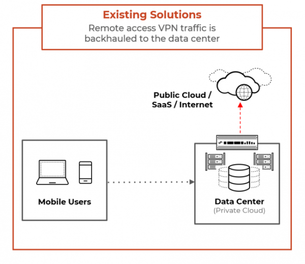 Tradicionalan pristup work-from-home ili udaljenim ispostavama je VPN kojeg prati usmjeravanje prometa u “centralu” i, po potrebi, na internet. No, ovakav pristup znači snažnu koncentraciju opreme, znanja i rada u jednoj točki (centralni ured). Sama udaljena računala zahtijevaju puno angažmana IT tehničara. Dodatno, preusmjeravanje prometa s mobilnih laptopa do centrale, bez previše ograničenja, otvara površinu napada i povećava rizike.