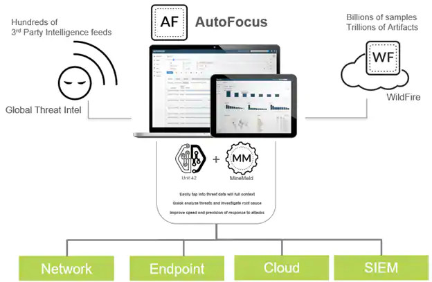 Der kontextabhängige AutoFocus™ kontextbezogener Threat Intelligence Service von Palo Alto Networks beschleunigt Ihre Fähigkeit, schneller auf Cyberangriffe zu reagieren und kritische Bedrohungen zu analysieren, untersuchen und sofort darauf zu reagieren. Die Bedrohungsanalyse wird schneller, konsistenter und präziser. Sie bietet sofortigen Zugriff auf Community-basierte Bedrohungsdaten, die durch einen umfassenden Kontext und eine Zuordnung des Unit 42 Bedrohungsforschungsteams von Palo Alto Networks verbessert werden. Das spart Zeit und Aufwand für eine schnellere und genauere Bedrohungsanalyse. Jetzt können Ihre Teams die Ursache von Malware schnell untersuchen, korrelieren und lokalisieren, ohne spezielle Malware-Forscher oder zusätzliche Tools hinzufügen zu müssen. Dank automatisierter Schutzfunktionen können Sie auf einfache Weise rohe Intelligenz in Ihre Umgebung schützen.