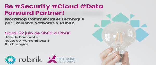 Workshop Commercial et Technique par Exclusive Networks & Rubrik Posté sur: 27/05/2021 Par: Cet atelier donnera à vos commerciaux et à vos ingénieurs de l’avant-vente un aperçu […] Lire la suite Partager: