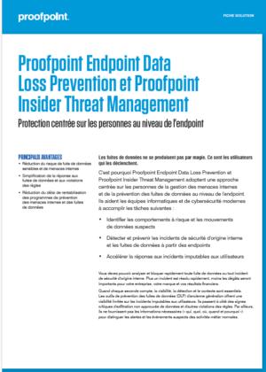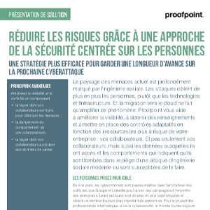 Proofpoint est une plateforme de sécurité moderne centrée sur les personnes. Elle adopte une approche complète, adaptative et efficace pour protéger les ressources stratégiques de votre entreprise contre les principaux risques, à savoir les collaborateurs.