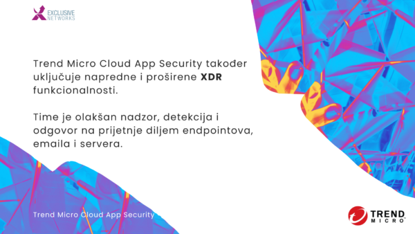 Trend Micro Cloud App Security je SaaS-based platforma koja nadopunjuje built-in funkcionalnosti u email servisima poput Microsoft 365 i Google Workspace. Radi se o sigurnosnom rješenju koje nudi višeslojnu zaštitu korisnika SaaS aplikacija. Usto, glavna prednost ovog rješenja je to što je ovakva vrsta zaštita jednostavnija za implementaciju nego kod on-prem infrastrukture.