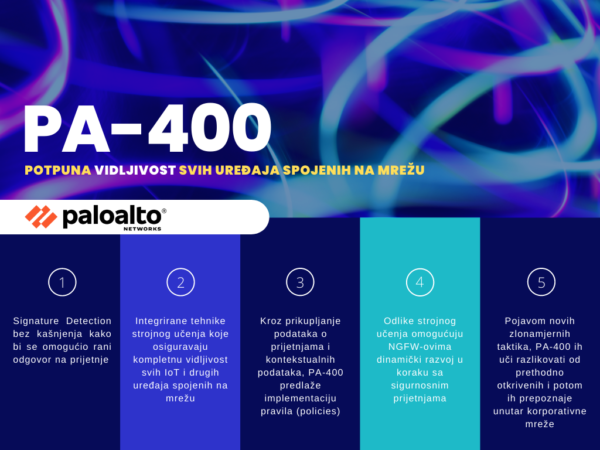 Neovisno o veličini organizacije, digitalno okruženje je potrebno transformirati uz moderno NGFW rješenje. Implementacija rješenja poput PA-400 osigurat će pravovremenu identifikaciju dijelova mreže i aplikacija pod rizikom. Također, rješenje će prepoznati one korisnike čija aktivnost dovodi ili može dovesti do sigurnosnog incidenta.