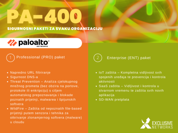 Implementacija PA-400 rješenja podrazumijeva uvođenje industry-leading zaštite. Između uređaja iz PA-400 serije i većih serija ne postoje različitosti u funkcionalnostima ili ograničenja. Korišteni operacijski sustav i softver su identični.