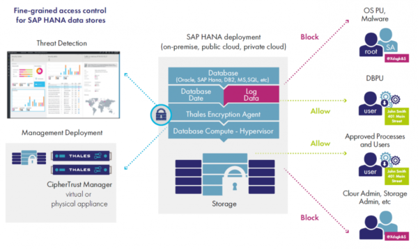 Thales CipherTrust Transparent Encryption štiti sve podatke kojima SAP HANA upravlja i pruža usklađenost s regulativama o zaštiti podataka. Ovaj pristup organizacijama omogućuje jednostavnu enkripciju log volumes i podataka.
