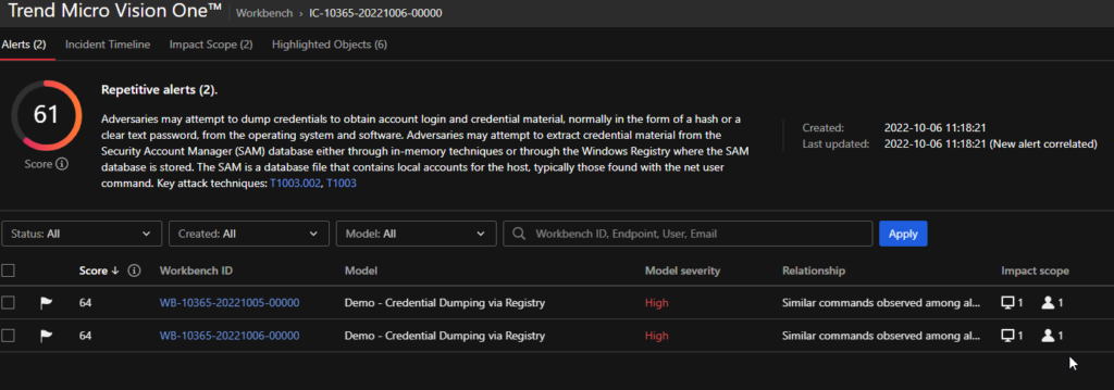 Današnji malware incidenti sastoje se od desetaka i više događaja, svaki od kojih je za sebe jedna “detekcija”. U primjeru niže, XDR (Trend Micro Vision One) na površinu izbacuje jedan, ali važan “alert”. Riječ je o aplikaciji isporučenoj kroz email, koja zatim pokreće akcije tipične za moderne ransomware i slične napade.