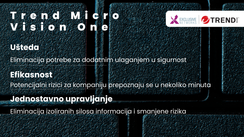 Uz Vision One, organizacije brže postižu poslovne ciljeve, bez gubitka dragocjenog vremena i novca na borbu s kompleksnim sigurnosnim izazovima. Rješenje omogućuje SOC timovima da brže donose odluke i fokusiraju se na prijetnje koje predstavljaju stvarni rizik. Vision One nije samo praktično, već i ekonomično rješenje. Najvažnije, ova platforma ujedinjuje različite alate, eliminira potrebu za dodatnim pomagalima i dodatnim ulaganjem u sigurnost.