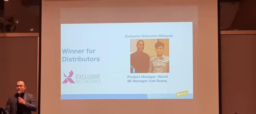 Award was received by Muralitharan Andi, Product Manager and Lee Kok Seang, SE Manager of Exclusive Networks Malaysia.