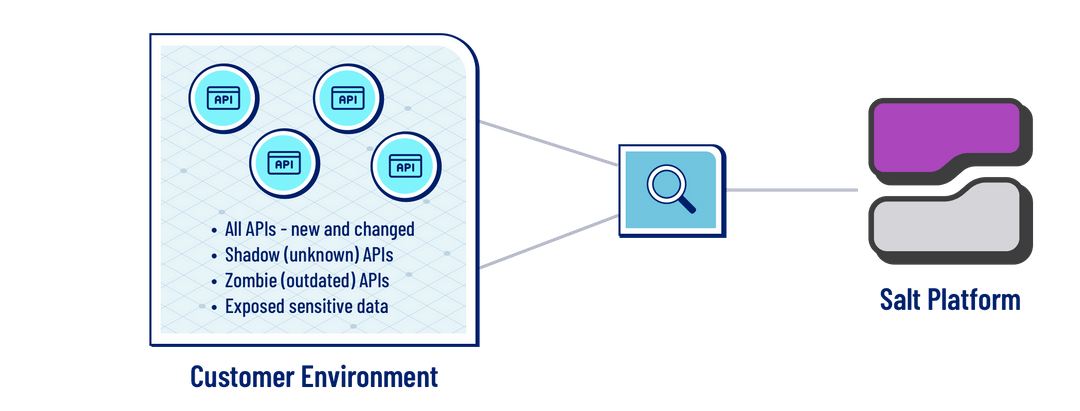 Salt integrates quickly with any environment and doesn’t require agents, changes to application code, or configuration. As they’re not inline, there’s no impact on application performance, availability, or functionality. With support for more than 50 API collection options, Salt works anywhere and supports the most use cases to protect all customer APIs – internal, external, and third-party and including REST, GraphQL, and SOAP formats.