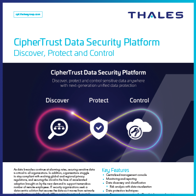 Thales helps organisations move past silos of encryption and crypto management solutions to attain central and uniform deployments of data protection solutions and prepare your organisation for the next security challenge and new compliance requirements at the lowest TCO. Our advanced data discovery, data encryption, key management, network encryption, hardware security module and data protection on demand solutions enable customers to protect and remain in control of their data wherever it resides – across cloud, on-premises and hybrid IT environments.
