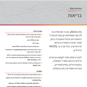 Allot network (NASDAQ, TA Stock Exchange: ALLOT)-based visibility, control and security solutions are deployed globally by the world’s leading enterprises to improve network performance, ensure optimal QoE and deliver security services.