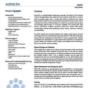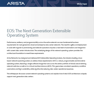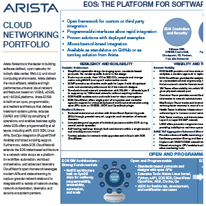 Arista’s award-winning platforms, ranging in Ethernet speeds from 10 to 100 gigabits per second, redefine scalability, agility and resilience. Arista has shipped more than five million cloud networking ports worldwide with CloudVision and EOS, an advanced network operating system. Committed to open standards, Arista is a founding member of the 25/50GbE consortium. Arista Networks products are available worldwide directly and through partners. At the core of Arista’s platform is the Extensible Operating System (EOS™), a ground-breaking network operating system with single-image consistency across hardware platforms, and modern core architecture enabling in-service upgrades and application extensibility.