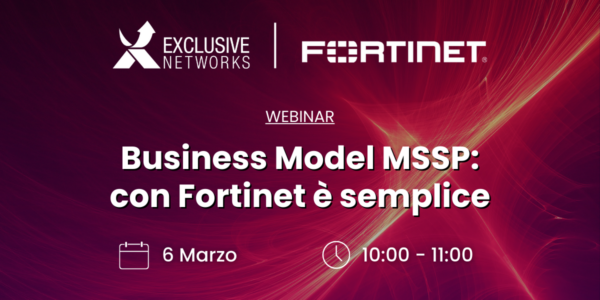 Unisciti a Exclusive Networks il 6 marzo alle ore 10:00 per il webinar “Business Model MSSP: con Fortinet è semplice“, dedicato alla trasformazione della gestione della cybersecurity.