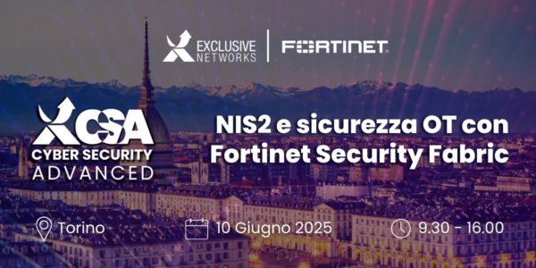 Exclusive Networks, in collaborazione con Fortinet, ti invita all’ottava edizione della Cyber Security Advanced NIS2 e sicurezza OT con Fortinet Security Fabric che si terrà il 10 Giugno a Torino.