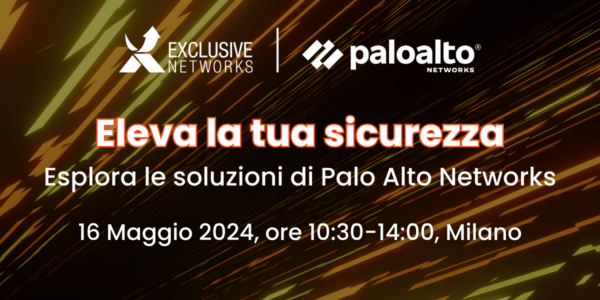 Exclusive Networks e Palo Alto Networks sono lieti di invitarti all’evento “Eleva la tua sicurezza: esplora le soluzioni di Palo Alto Networks” che si terrà il 16 Maggio dalle ore 10:30 a Milano.