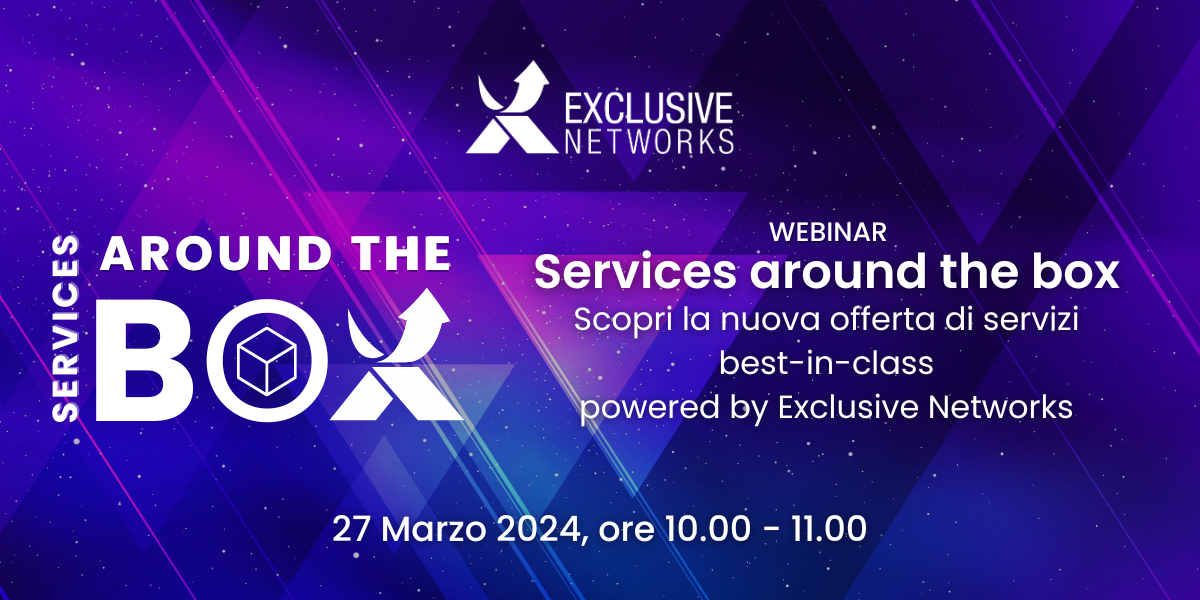 L’27 Marzo, alle ore 10.00, ti aspettiamo al webinar “Services Around the Box” per presentarti i nuovi servizi best-in-class di Exclusive Networks dedicati a semplificare i processi di installazione e configurazione dei dispositivi.