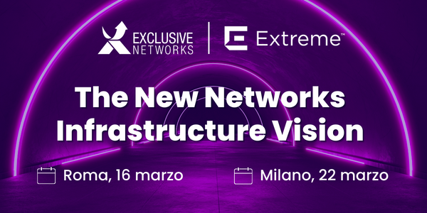 Exclusive Networks ed Extreme Networks sono lieti ad invitarti all’evento “The New Networks Infrastructure Vision”, che si terrà il 16 Marzo a Roma e il 22 Marzo a Milano.