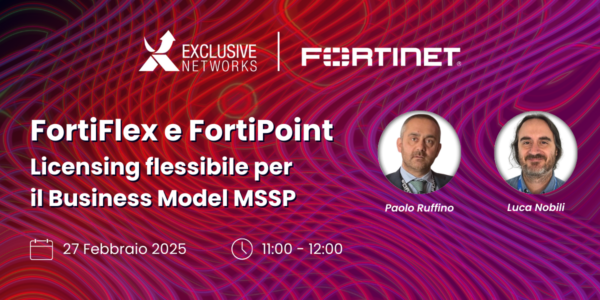 Unisciti a Exclusive Networks il 27 Febbraio, alle ore 11:00, per il nuovo webinar “FortiFlex e FortiPoints. Licensing flessibile per il Business Model MSSP”, dedicato alla trasformazione della gestione della cybersecurity.