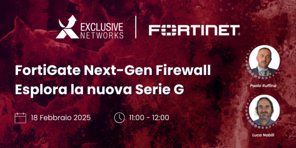 Unisciti a Exclusive Networks il 18 Febbraio, alle ore 11:00, per il nuovo webinar organizzato in collaborazione con Fortinet “FortiGate Next-Gen Firewall: Esplora la nuova serie G”.