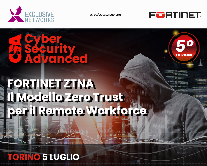 Exclusive Networks in collaborazione con Fortinet, è lieta di invitarti alla quinta edizione della Cyber Security Advanced in presenza, con i suoi laboratori tecnici e importanti novità come la release FortiOS 7.2.