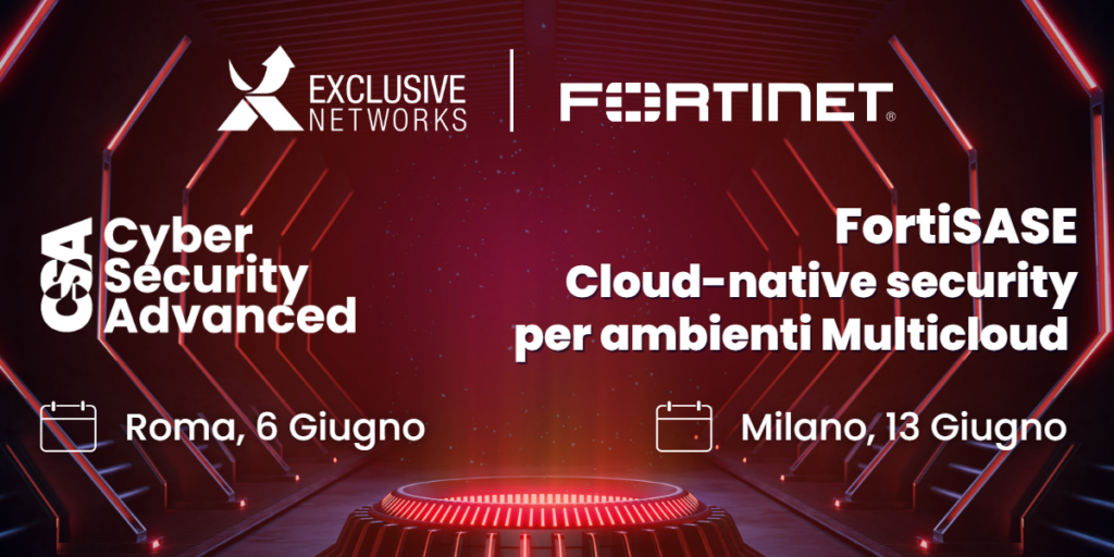 Exclusive Networks, in collaborazione con Fortinet, è lieta di invitarti alla sesta edizione della Cyber Security Advanced, con i suoi laboratori tecnici e importanti novità nel mondo della Cybersecurity come il FortiSASE.