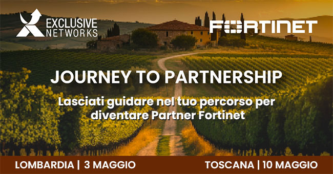 Exclusive Networks in collaborazione con Fortinet, è lieta di invitarti all’evento “Journey to Partnership”, durante il quale avrai l’opportunità di scoprire i numerosi vantaggi e incentivi riservati esclusivamente ai Partner.