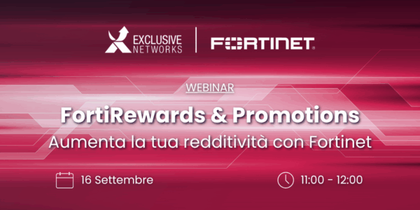 Exclusive Networks ti invita a partecipare al webinar dedicato alle Promozioni e Incentivi Fortinet per il secondo semestre 2025, che si terrà il 16 settembre, alle ore 11.00.