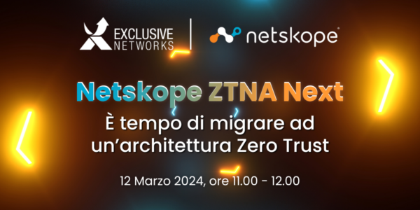 Ti invitiamo il 12 Marzo, alle ore 10.00, al webinar “Netskope ZTNA Next: È tempo di migrare ad un’architettura Zero Trust”.
