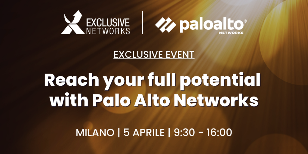 Exclusive Networks e Palo Alto Networks sono lieti di invitarti all’evento “Reach your full potential with Palo Alto Networks”, che si terrà il 5 Aprile, dalle ore 9.30 a Milano.