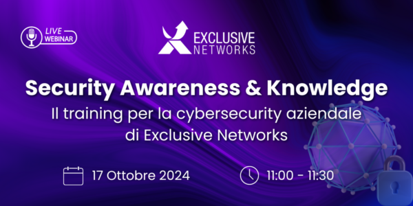 Il protagonista del secondo appuntamento della serie di webinar per il mese di ottobre, dedicato alla sensibilizzazione alla sicurezza informatica, è Security Awareness & Knoledge: il training per la cybersecurity aziendale di Exclusive Networks.