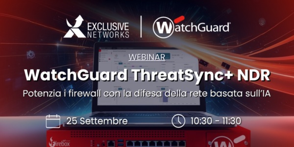 Ti invitiamo il 25 Settembre, alle ore 10.30, al webinar “WatchGuard ThreatSync+ NDR: Potenzia i firewall con la difesa della rete basata sull’IA”.