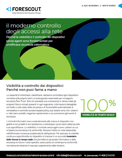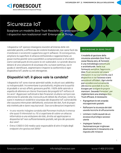 Forescout è l’innovatore del settore nel fornire una difesa attiva per l’Enterprise of Things (EoT). Le sue soluzioni mitigano efficacemente i rischi dei dispositivi connessi alla rete, tra cui IoT (Internet of Things) e l’OT (Operational technology).
