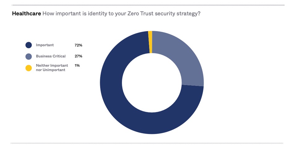 - 99% van de gezondheidszorgorganisaties beschouwt identiteit als centraal in hun Zero Trust-strategieën.