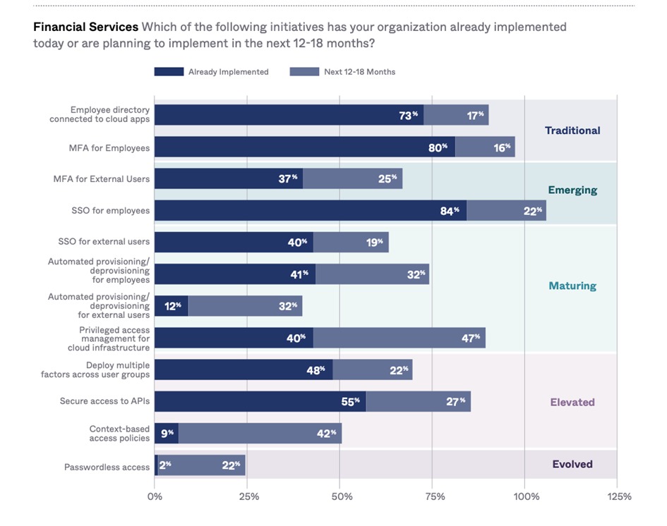 De invoering van identiteitsoplossingen heeft eveneens de transformatie in de financiële dienstverlening gestimuleerd, waarbij veel organisaties zich eerst richten op hun interne systemen en personeel:
