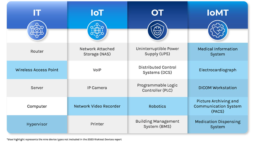 The Riskiest Connected Devices in 2024 identificeert de vijf meest riskante apparaattypen in vier categorieën: IT, IoT, OT en IoMT. Hier zijn de belangrijkste hoogtepunten.