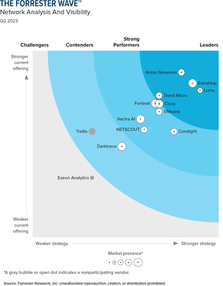 ExtraHop is uitgeroepen tot leider onder leveranciers van netwerkanalyse en -zichtbaarheid (NAV)-oplossingen en behaalde de hoogst mogelijke scores in 20 van de 29 criteria in The Forrester Wave™ report. Volgens het rapport heeft ExtraHop de grootste marktaanwezigheid onder de leiders.