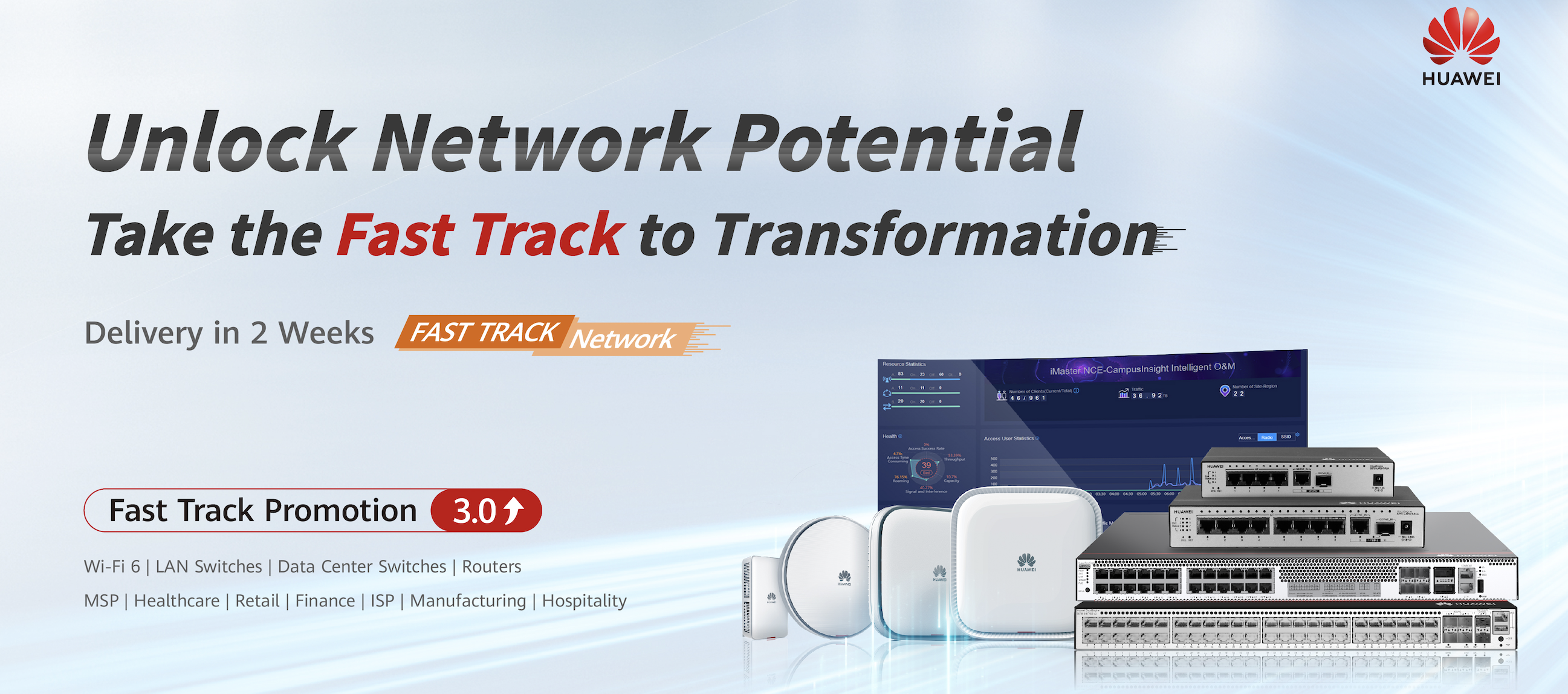 Profiteer in november en december nog van verhoogde discounts op een geselecteerd LAN & WLAN product portfolio inclusief gegarandeerde levering binnen twee weken na moment van bestellen. Huawei stelt je in staat om dit jaar nog hardware- en projecten op te leveren. Mis deze kans niet!