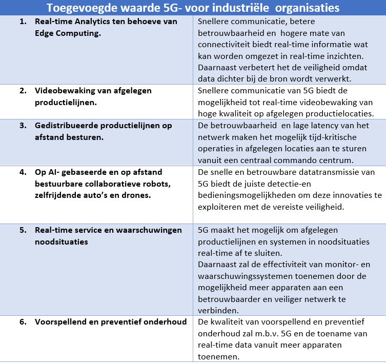 Maar wat maakt 5G nou zo interessant voor industriële organisaties en wat is de concrete Value-Add?