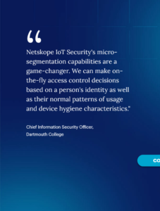 Netskope IoT Security biedt ongekend zicht op alle aangesloten apparaten en beveiligt ze door middel van contextgedreven classificatie, risicobeoordeling, segmentatie en toegangscontrole op IoT-schaal.