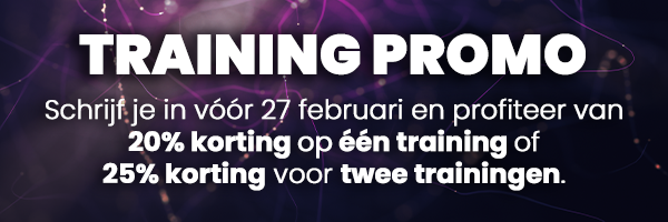Schrijf je uiterlijk 27 februari in voor één van onze trainingen en ontvang 20% korting. Schrijf je in voor twee trainingen en ontvang zelfs 25% korting! Bij Exclusive Networks verdiep je je kennis van netwerk- en securityoplossingen van Fortinet en Palo Alto Networks.