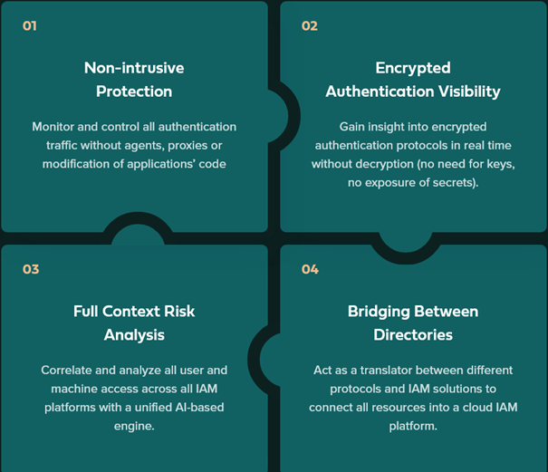 Silverfort Unified Identity Protection is gebaseerd op vier kerntechnologieën: