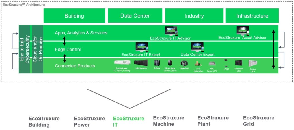 EcoStruxure IT to kompleksowe rozwiązanie DCIM (Data Center Infrastructure Management) od Schneider Electric, znanego bardzo dobrze m.in. użytkownikom produktów APC. Zapewnia ciągłość biznesową i bezpieczeństwo, umożliwiając monitorowanie, zarządzanie, wgląd, planowanie i modelowanie infrastruktury – niezależnie od wielkości i architektury środowiska. Oferuje rozwiązania lokalne, w chmurze oraz na obrzeżach sieci. To pierwsze w branży rozwiązanie do zarządzania infrastrukturą centrum przetwarzania danych oparte na chmurze oraz zupełnie nowa jakość i standardy w obszarze ochrony zasilania w organizacjach.