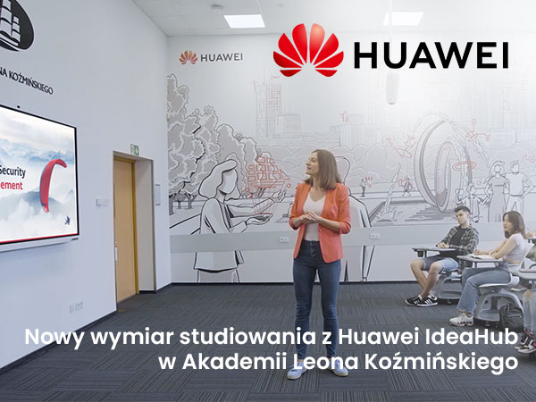 Huawei Polska i Akademia Leona Koźmińskiego współpracują ze sobą na rzecz rozwoju polskiej nauki. Po uruchomieniu studiów podyplomowych związanych z cyberbezpieczeństwem oraz programu ICT Academy, kolejną wspólną inicjatywą było oddanie do użytku sali edukacyjnej wyposażonej w Huawei IdeaHub, nowoczesne rozwiązanie typu All-in-one, które pozwala zastąpić kilka tradycyjnych narzędzi do współpracy jednym produktem.