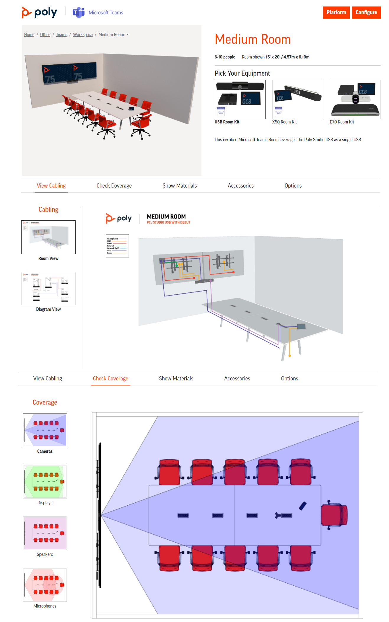 Poly Spaces to intuicyjny w obsłudze przewodnik w projektowaniu sal spotkań, dostępny w formie konfiguratora online. Ułatwia dobranie rozwiązań wideokonferencyjnych Poly do konkretnego rozmiaru sali konferencyjnej oraz zaimplementowanej w przedsiębiorstwie platformy (Zoom, Teams, Poly).
