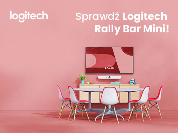 Rally Bar Mini to wideobar typu all-in-one z wbudowanymi głośnikami i kamerą o rozdzielczości 4K, 6 mikrofonami kierunkowymi, portem USB oraz natywną obsługą platform komunikacji online tj. Zoom czy Microsoft Teams.