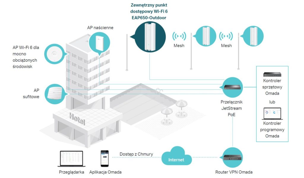 - oparty na chmurze Omada Cloud-Based Controller (w modelu subskrypcyjnym).