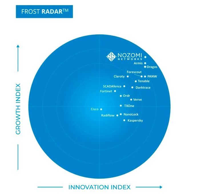 Nozomi Networks zostało uznane za lidera w raporcie Frost Radar 2023, wyprzedzając m.in. Armis, Dragos, Claroty, Forescout, Darktrace czy Radiflow.