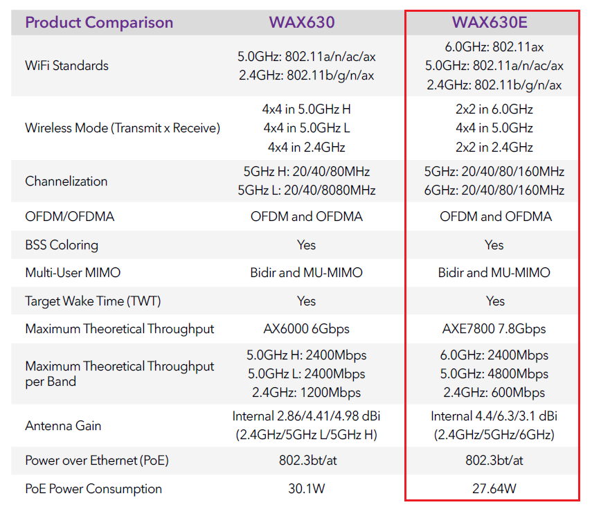 A tak te różnice przekładają się na porównanie z analogicznym modelem tego punktu dostępowego, ale bez Wi-Fi 6E: