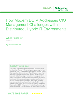 White Paper nr 281 („How Modern DCIM Addresses CIO Management Challenges within Distributed, Hybrid IT Environments”) zawiera wytyczne, jak za pomocą nowoczesnych systemów DCIM (Data Center Infrastructure Management) lepiej zarządzać rozproszonymi, hybrydowymi środowiskami IT:
