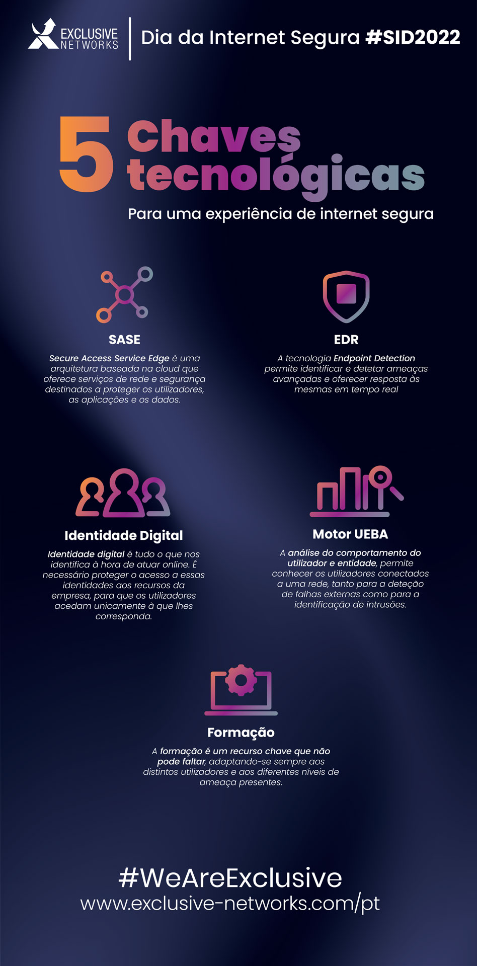 Tendo em vista a celebração do Dia da Internet segura, #SID2022, precisamente hoje, dia 8 de fevereiro, a Exclusive Networks, um especialista global em cibersegurança em infraestruturas digitais de confiança, explica quais são as tecnologias mais avançadas e, portanto, as chaves para alcançar a máxima segurança na Internet, também num ambiente empresarial.